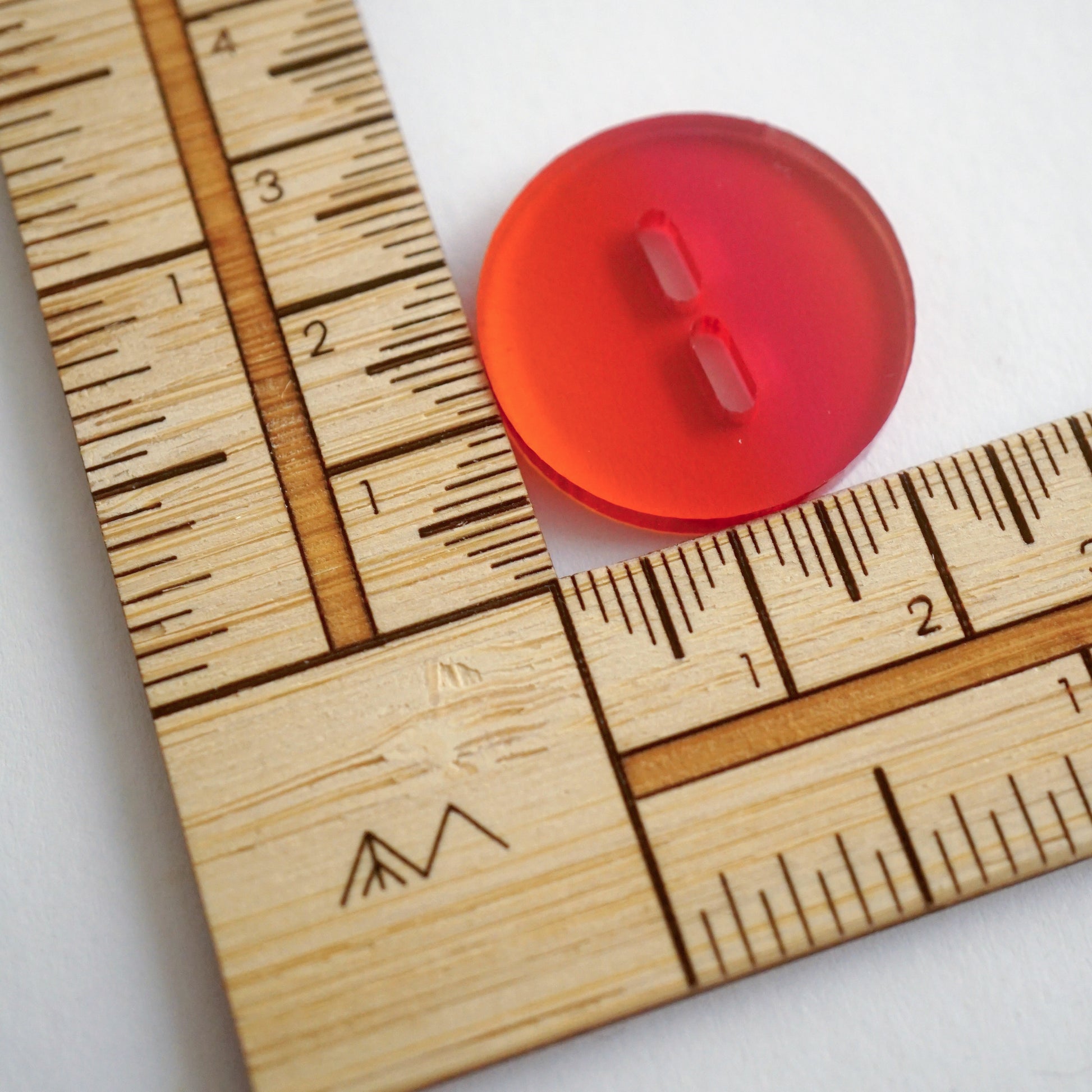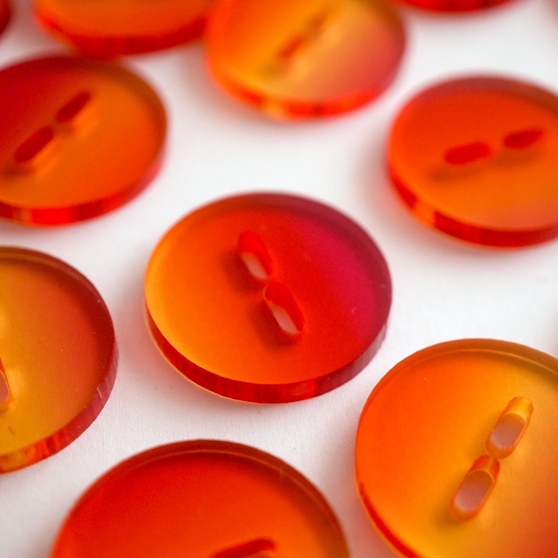 - Each button features a unique red-orange gradation, no two are exactly the same